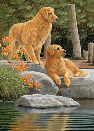 Wooden puzzle with 1000 pieces. Furry creatures. Retriever and autumn gold