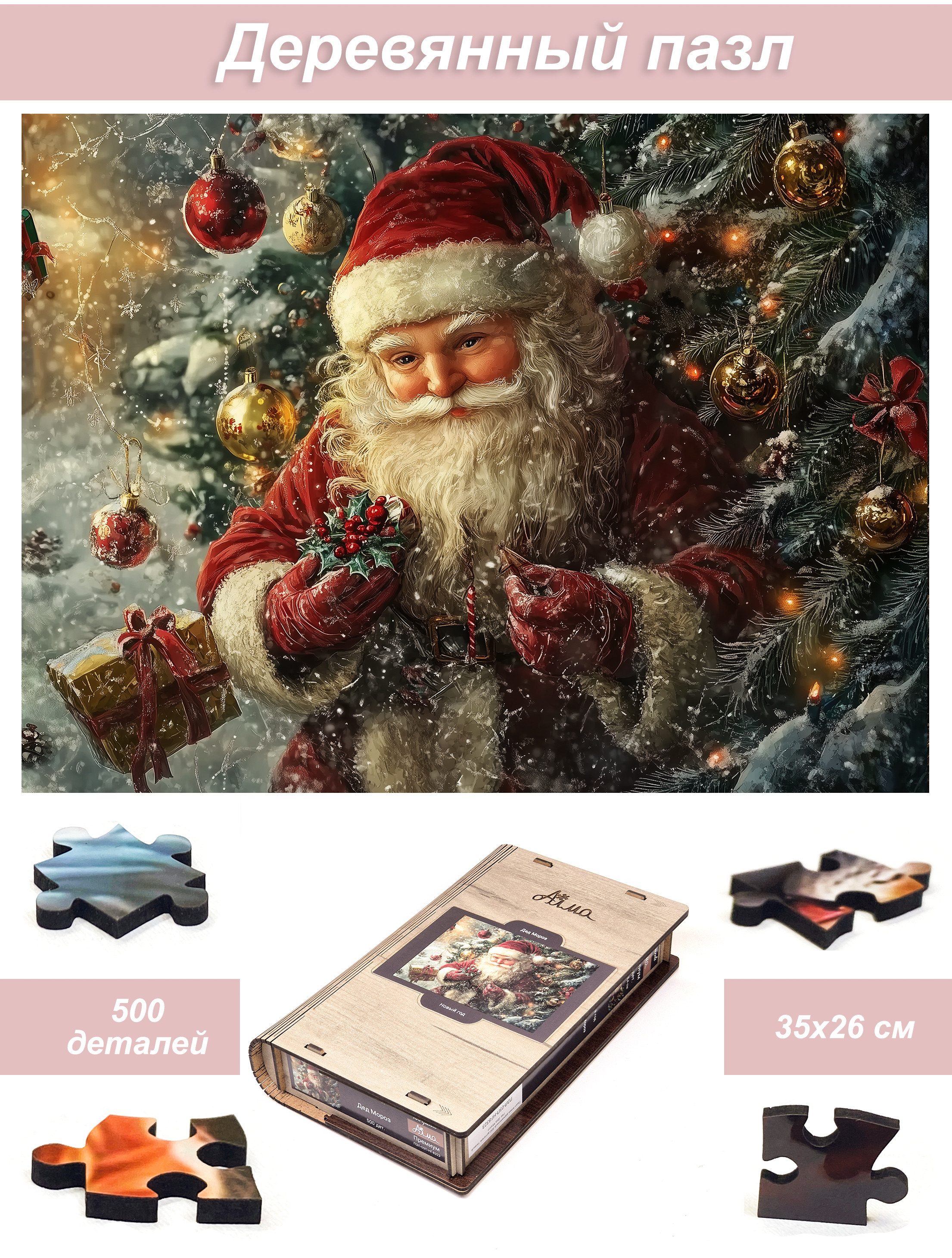 Пазл Алма деревянный 500 деталей. Новый год. Дед Мороз