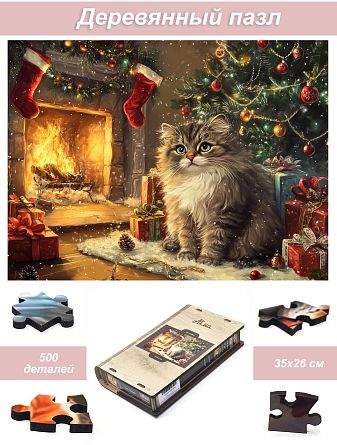 Пазл Алма деревянный 500 деталей. Новый год. Кот и пламя