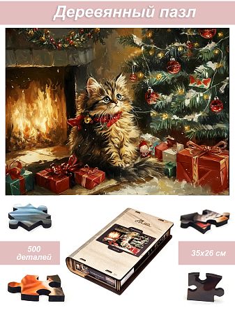 Пазл Алма деревянный 500 деталей. Новый год. Праздничный кот