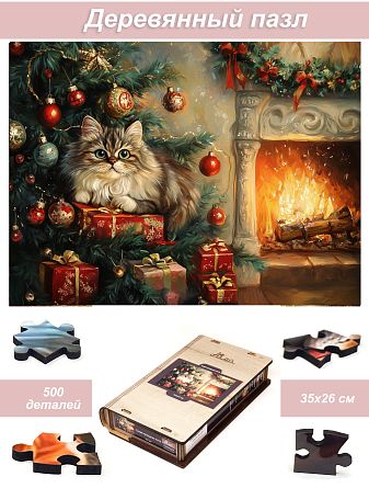 Пазл Алма деревянный 500 деталей. Новый год. Тихий праздник кота