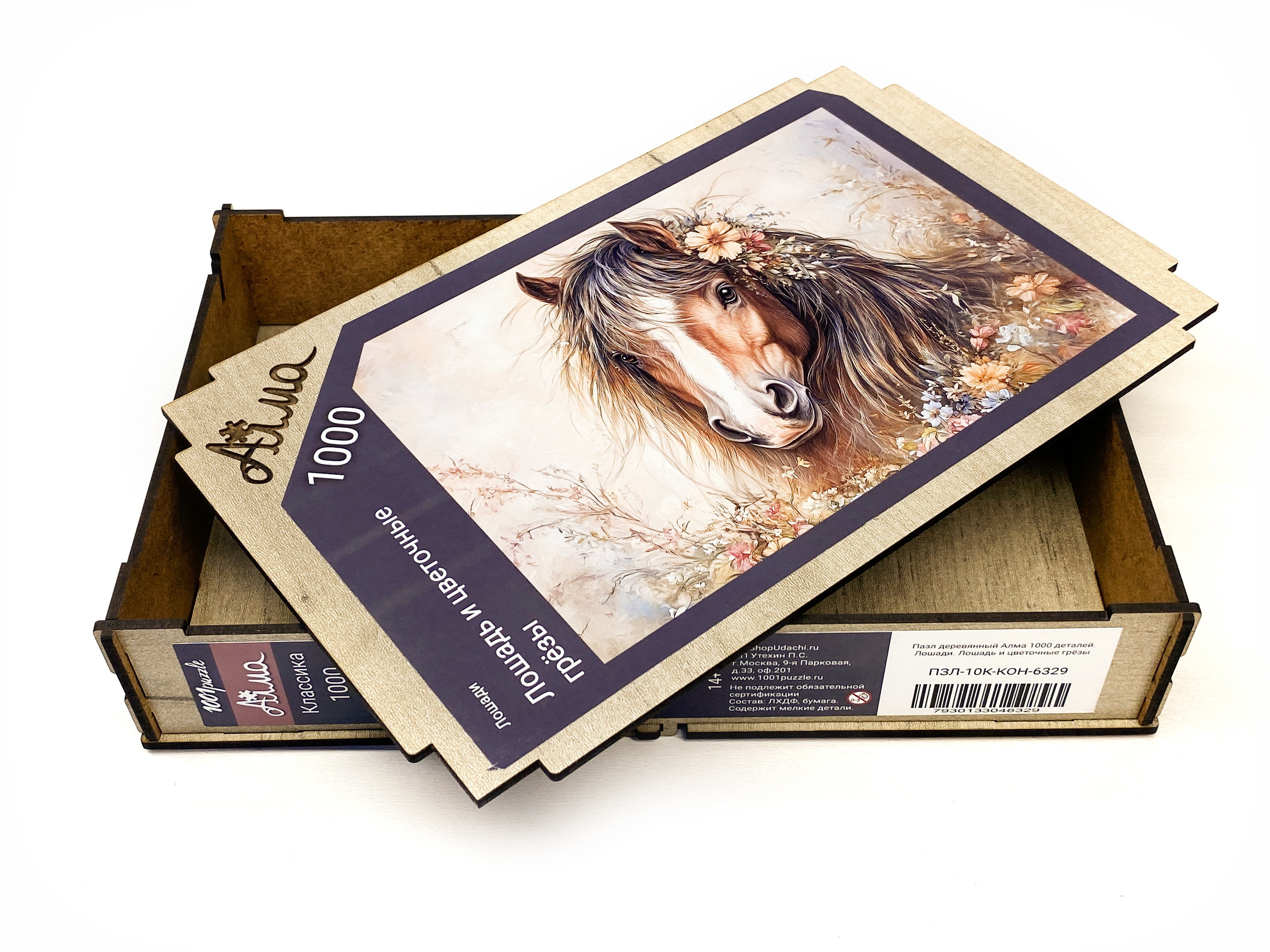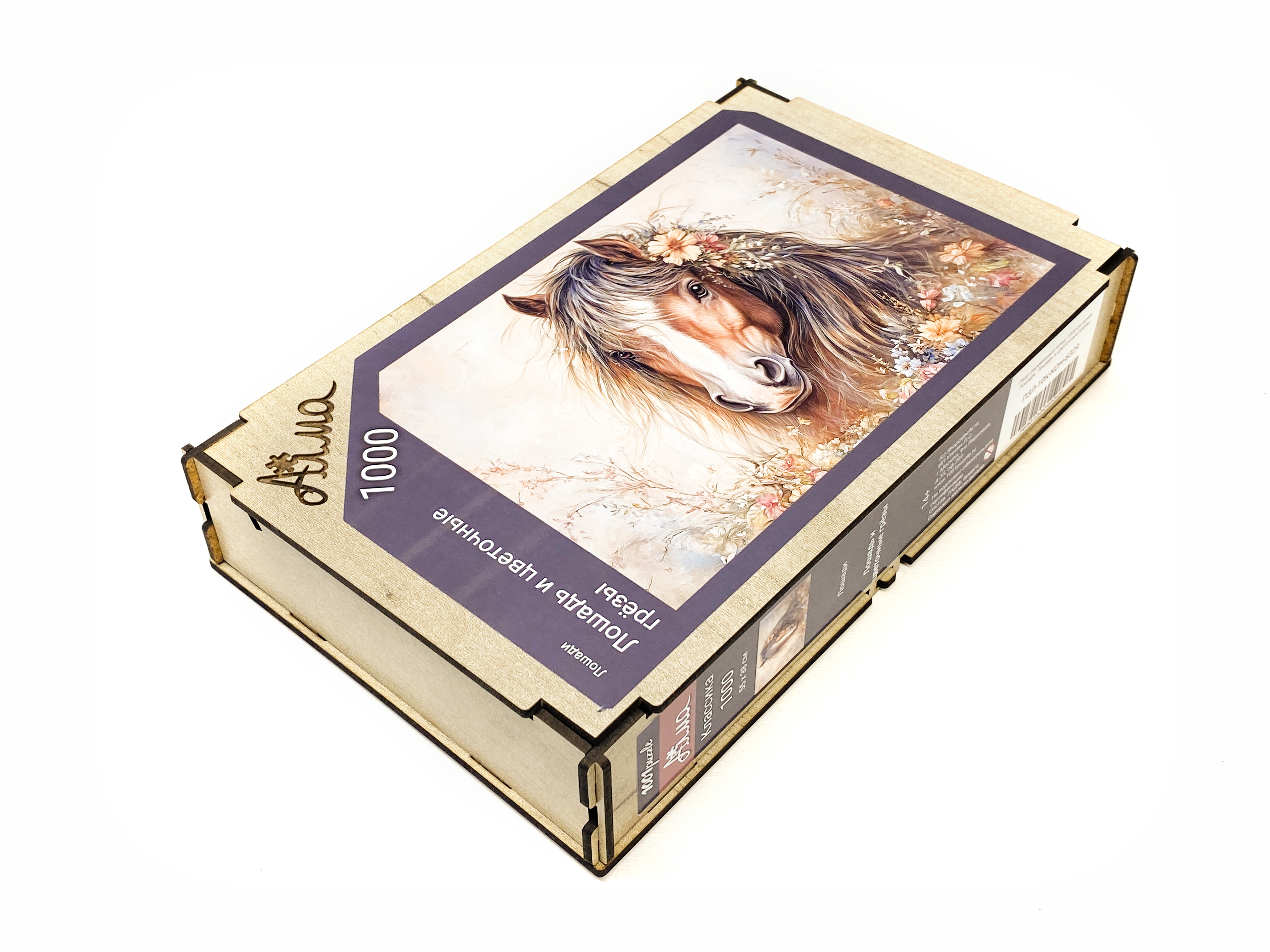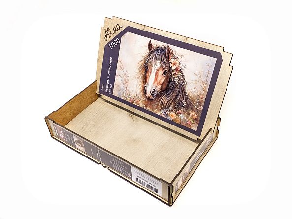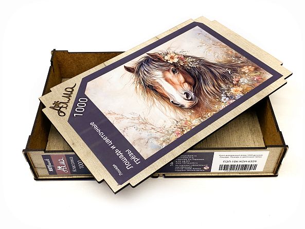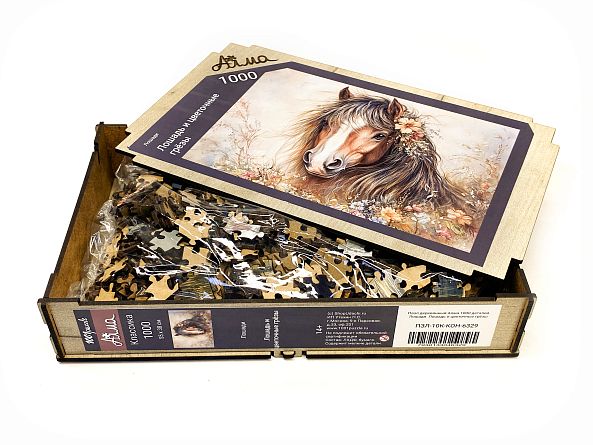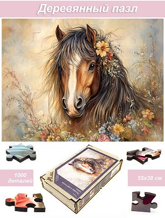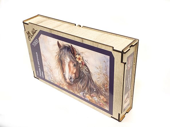 Wooden puzzle with 1000 pieces. Horses. Horse and flower dreams