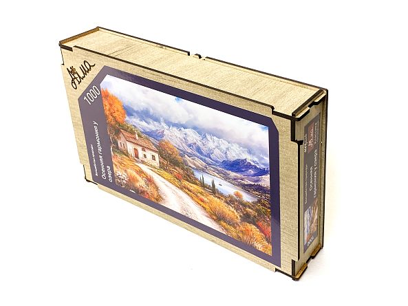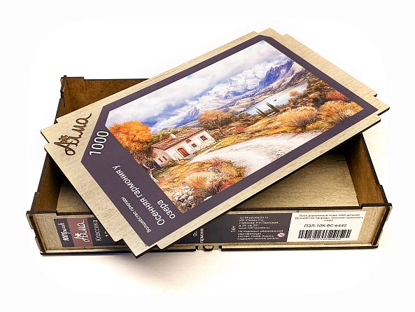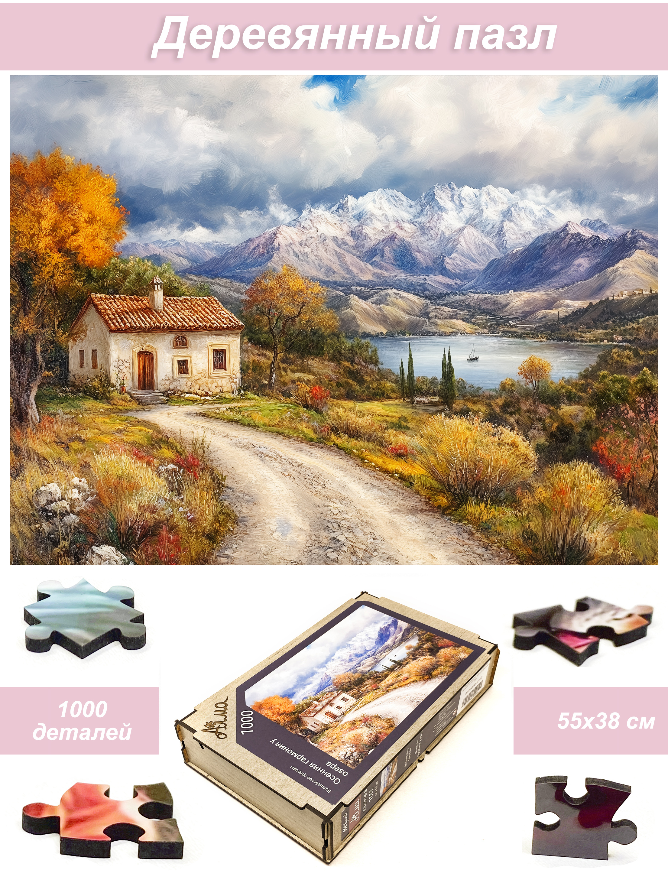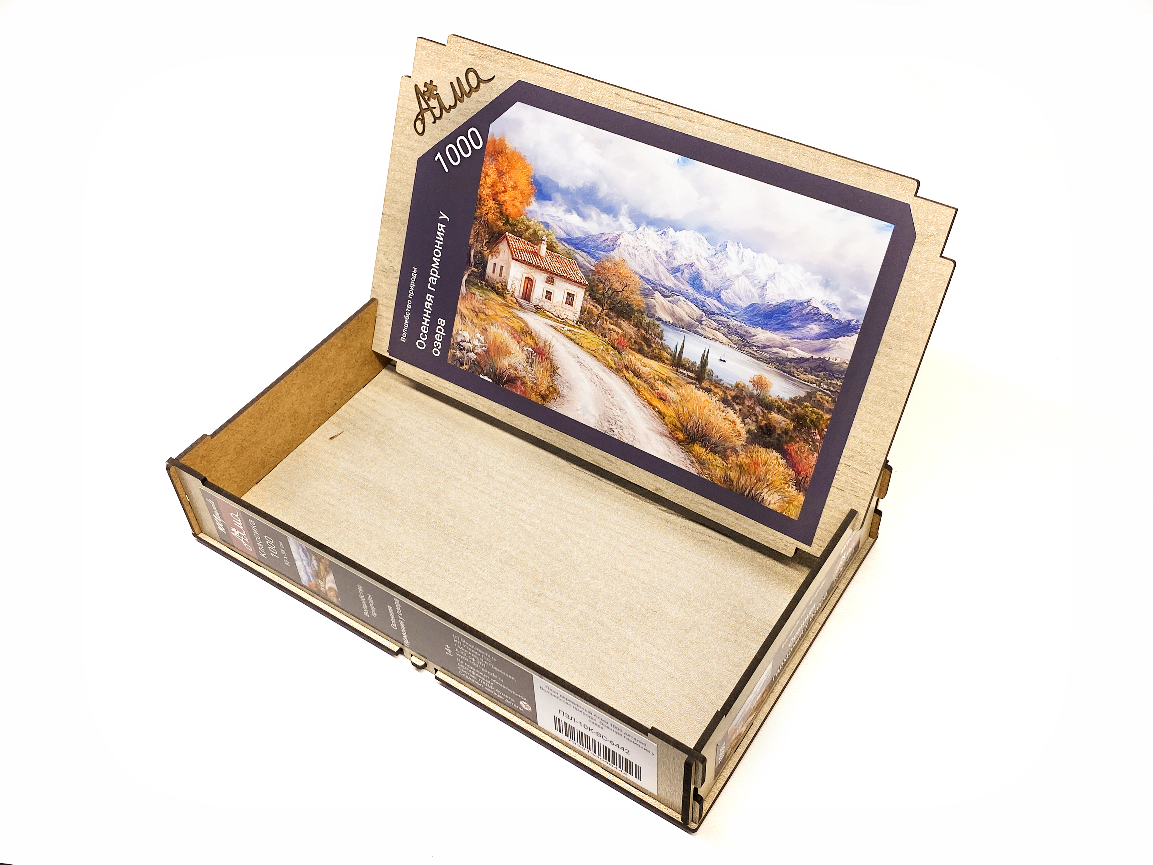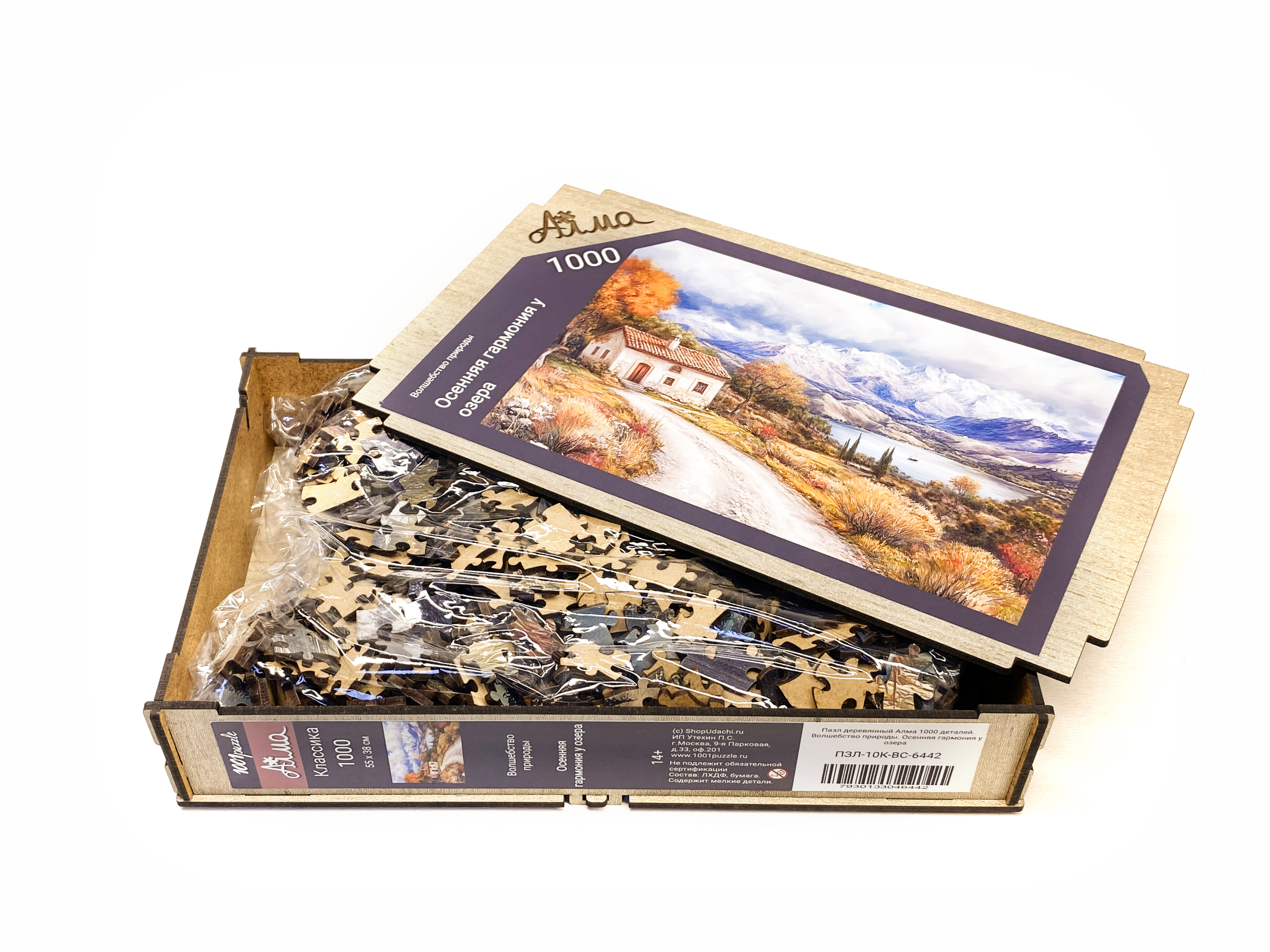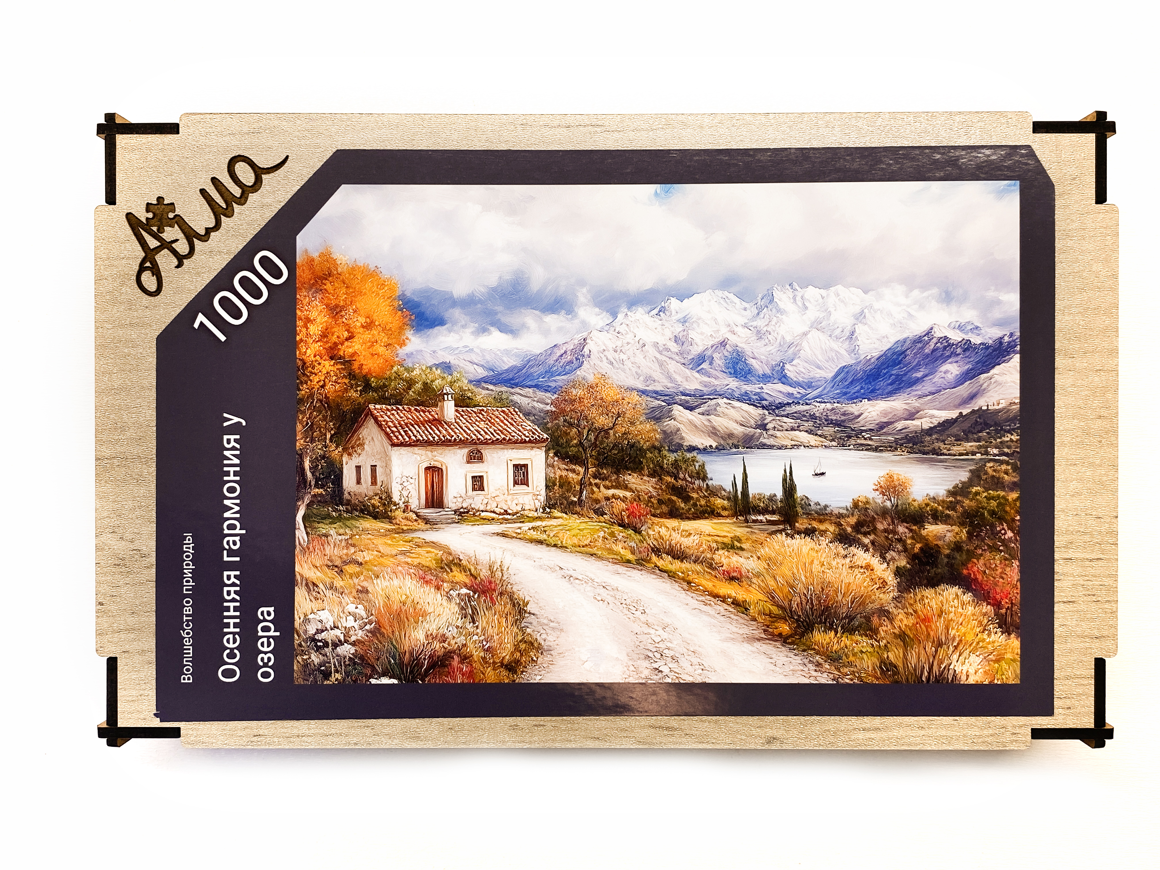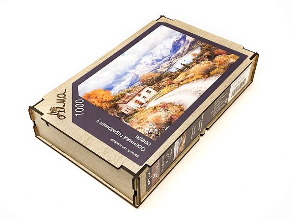 Wooden puzzle with 1000 pieces. The magic of nature. Autumn harmony by the lake