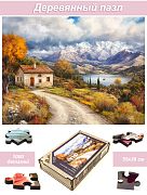 Wooden puzzle with 500 pieces. The magic of nature. Lake and cottage lights. Wooden puzzle with 500 pieces. The magic of nature. Lake and cottage lights. Wooden puzzle with 500 pieces. The magic of nature. Lake and cottage lights.