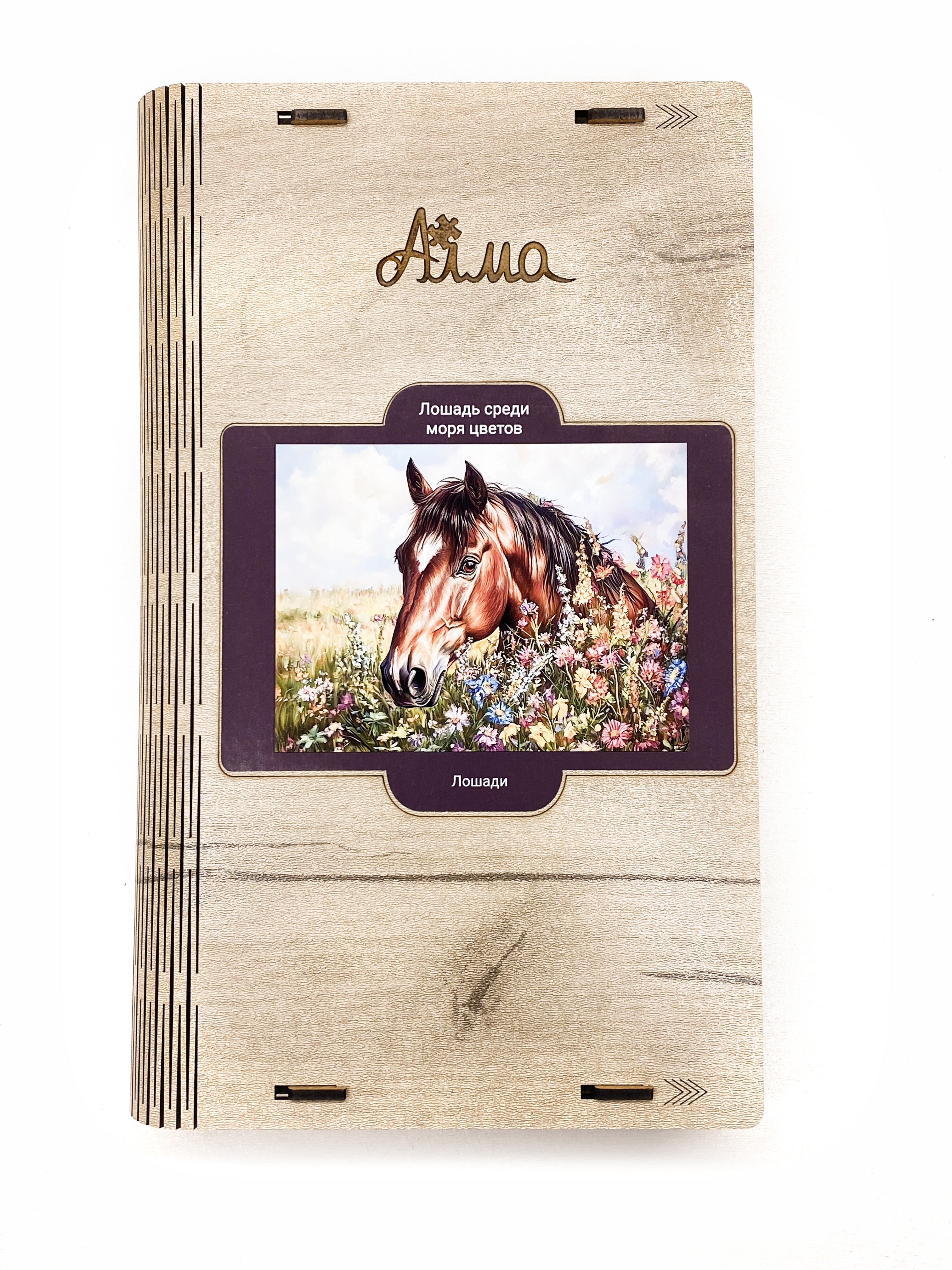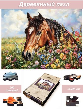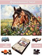 Wooden puzzle with 500 pieces. Horses. A horse among a sea of flowers