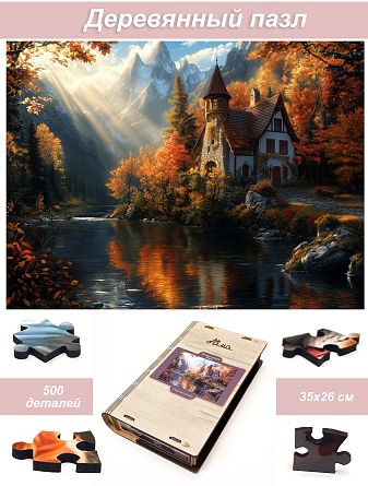 Wooden puzzle with 500 pieces. Fabulous houses. A cottage in the gold of autumn