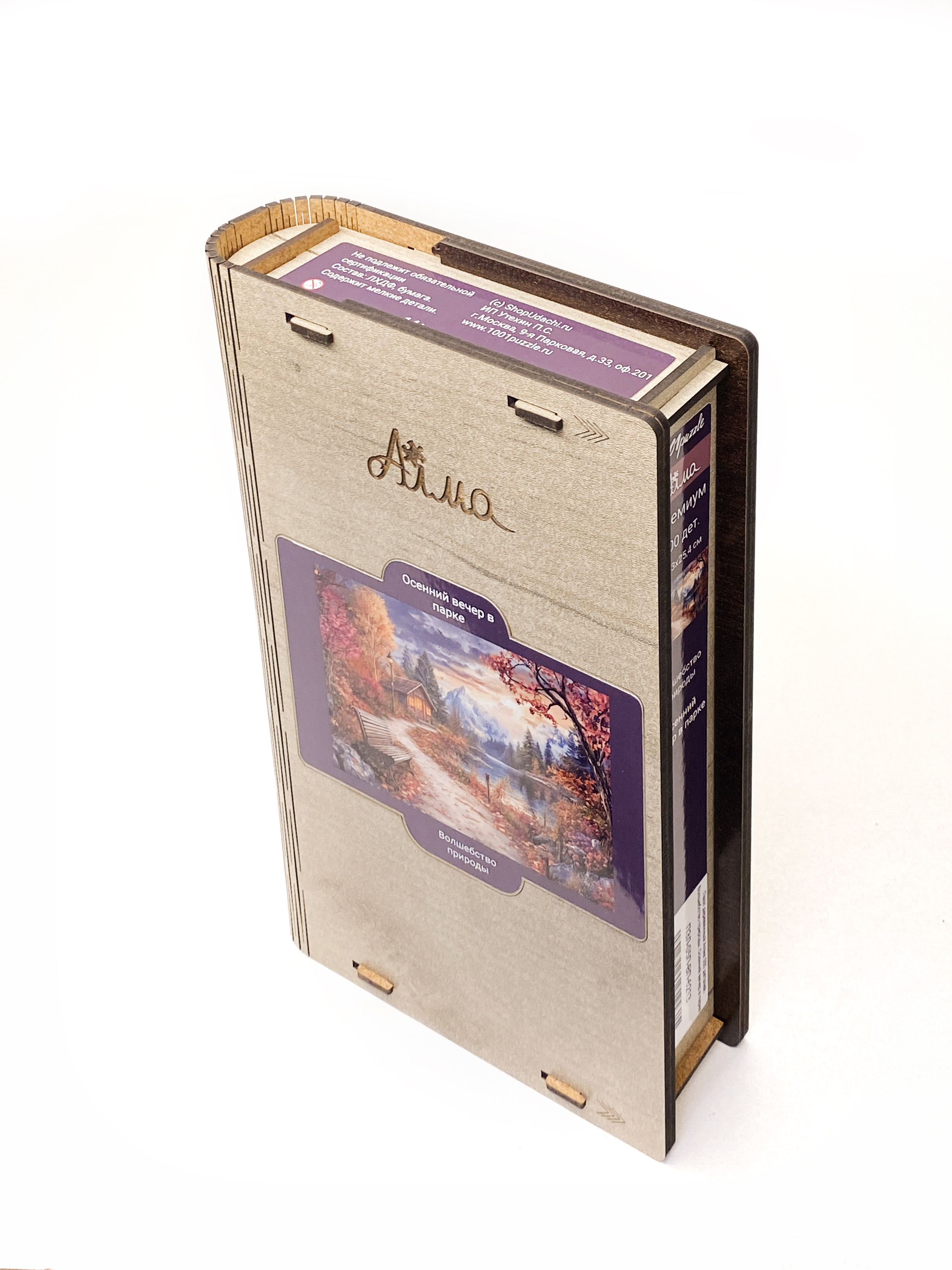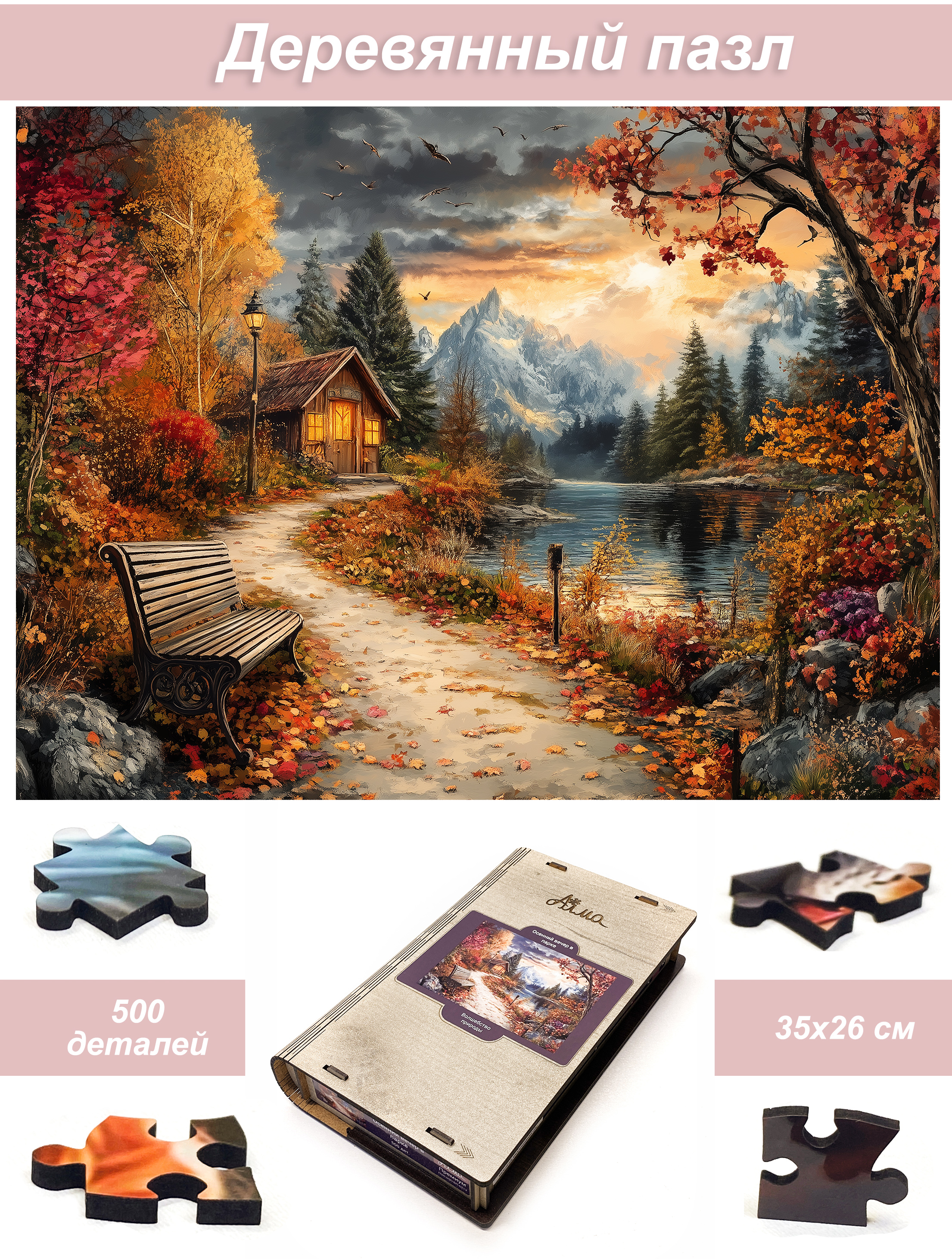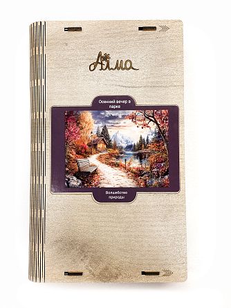 Wooden puzzle with 500 pieces. The magic of nature. Autumn evening in the park