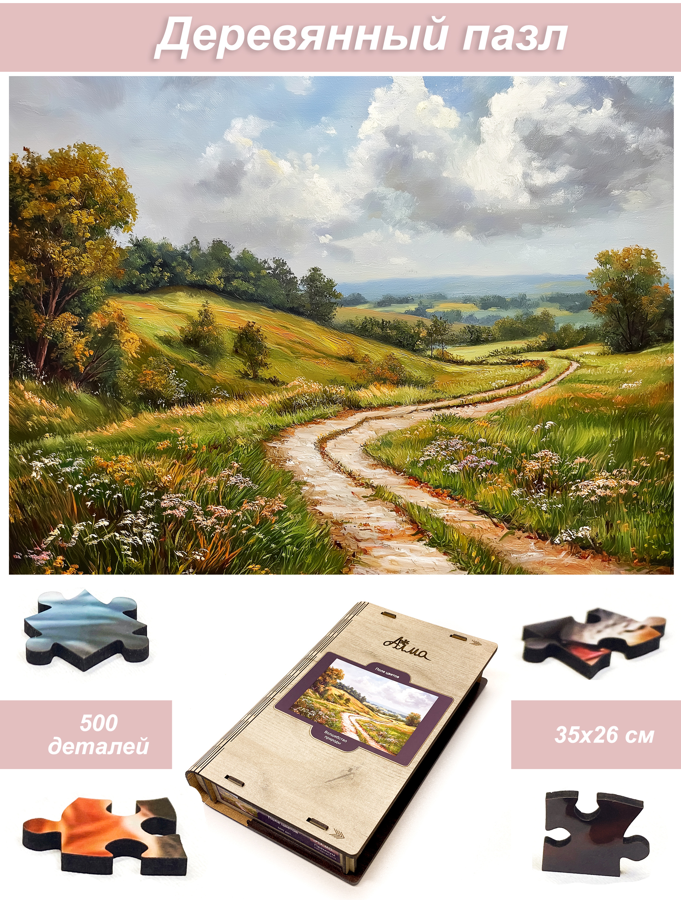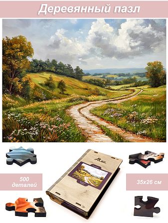 Wooden puzzle with 500 pieces. The magic of nature. Field of colors