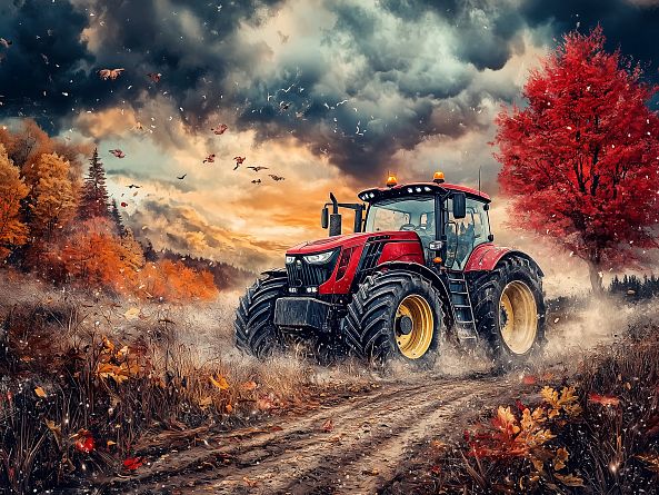 Wooden puzzle with 500 pieces. A time of freedom. The red tractor.